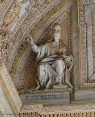 圣达玛稣原籍西班牙,在罗马出生。公元366年,教宗理伯留逝世,达玛稣当选继任。他在任期间,乌苏奇奴僭立为教宗,制造混乱达12年之久,而他拨乱反正,功绩昭著,圣热罗尼莫称他是无与伦