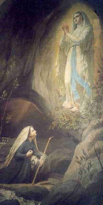 1858年2月11日,法国露德城有三个女孩(14岁的苏比鲁•伯尔纳德,她的妹妹玛利亚,11岁;她们的朋友约娜,12岁),一同出外到迦凡河边拾柴。